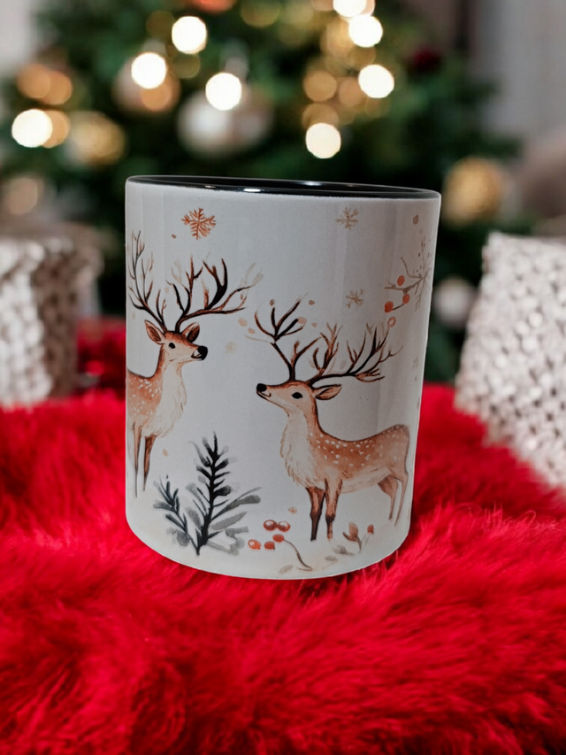 Tasse en Céramique Cerfs d’Hiver – Illustration Douce & Ambiance Scandinave